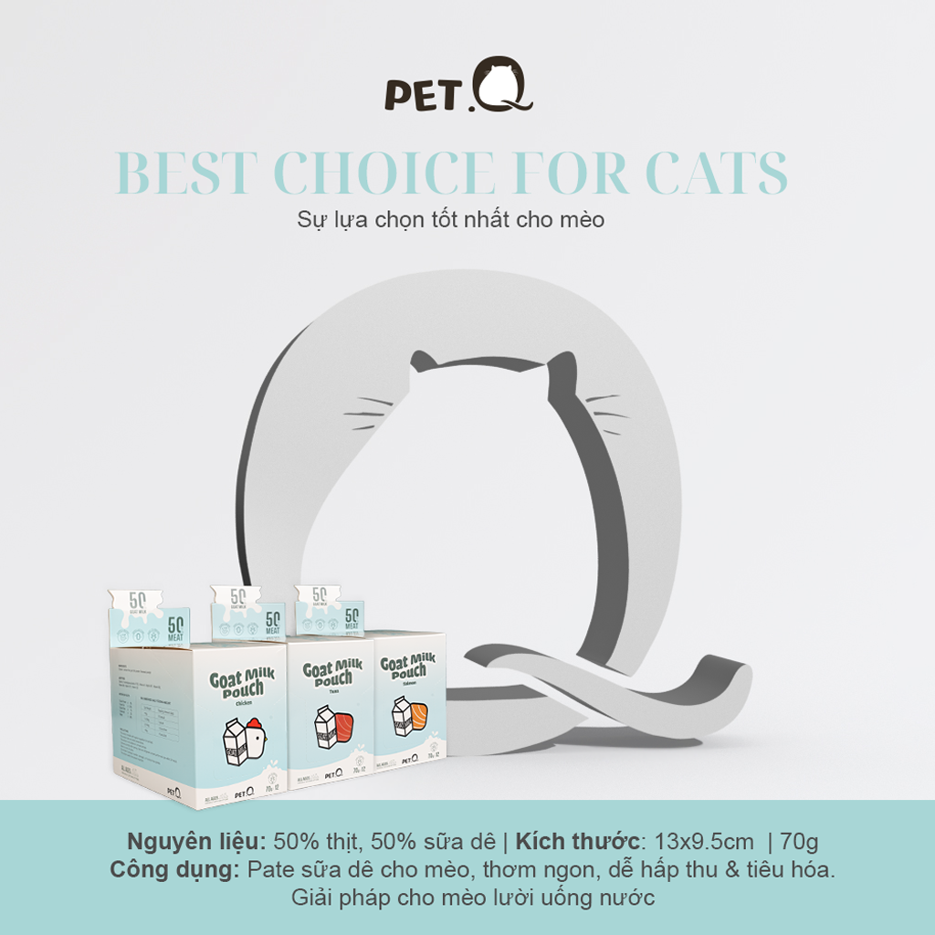 - Sản phẩm mới đến từ nhà PetQ với công thức đặc biệt từ 50% sữa dê và 50% thịt. Pate không chỉ có giá trị về mặt dinh dưỡng mà hương vị cũng thơm ngon, đủ để chinh phục bất kì chú mèo khó tính nào. Sữa dê được thu hoạch tự nhiên từ các trang trại, không lactose, phân tử protein nhỏ giúp mèo mọi độ tuổi đều dễ dàng hấp thụ. Ngoài ra, sản phẩm còn giúp bổ sung thêm nước, phù hợp cho các bé có vấn đề về đường tiết niệu, lười uống nước.